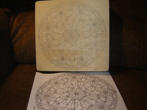 2.  Find some clip art that you like and trace it onto tracing paper.  This came from a clip art book I have with a bunch of mandala’s in it.  If you don’t know what a mandala is, I highly suggest you Google it…the images will blow your mind!!  I don’t use the originals from the book because they’re so pretty,  I don’t want to ruin them and may want to use them again.